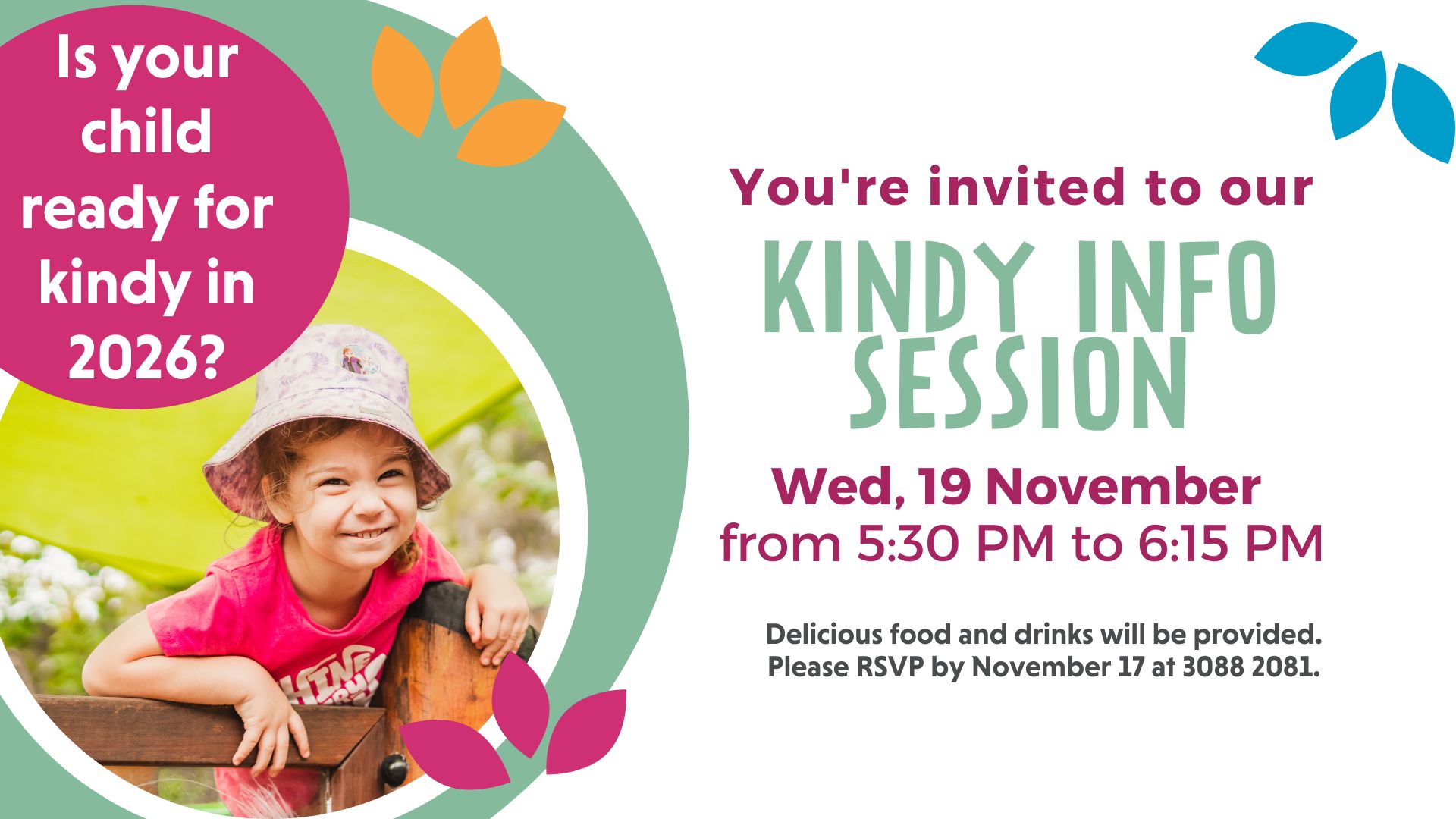 This is your chance to discover everything you need to know about your child’s kindy year in a relaxed, welcoming environment.