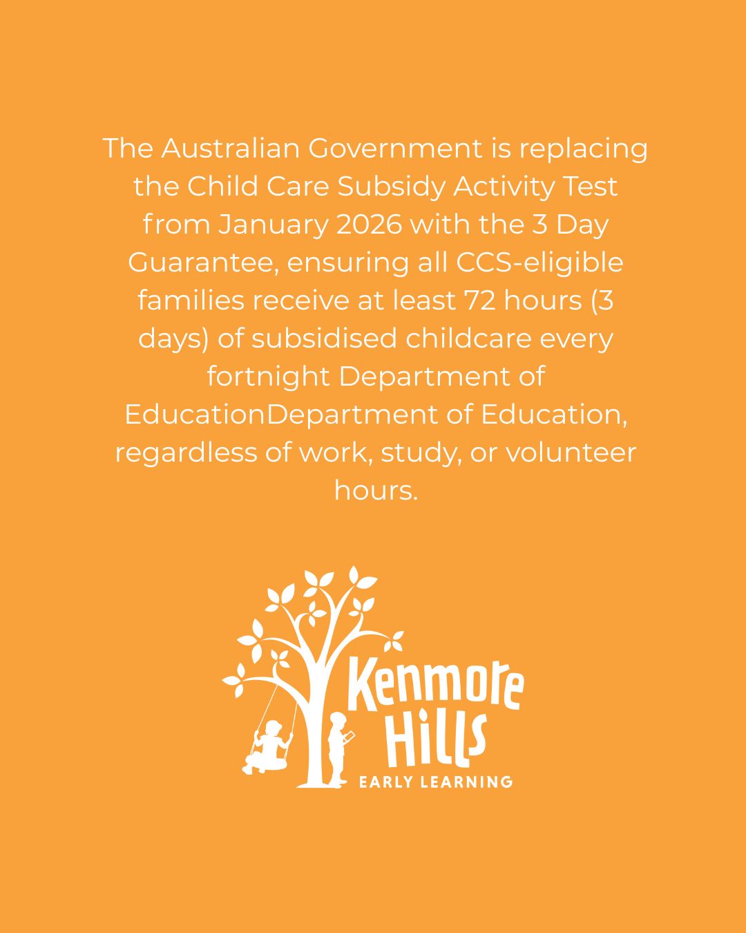 Once approved, the subsidy is paid directly to Kenmore Hills Early Learning. This reduces the fees you need to pay, leaving you responsible for covering the gap between the subsidy and our rates.
